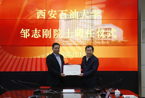 李華副校長主持儀式。他對鄒志剛院士、周勇教授的到來表示歡迎,并從歷史沿革、學(xué)科建設(shè)、科研特色、學(xué)生工作等方面介紹了西安石油大學(xué)的概況。