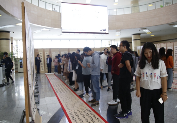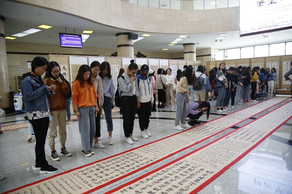 [校園文化]我校舉辦慶祝新中國成立70周年“詩詞鑒初心,筆墨寫華章”毛澤東詩詞百米書法長卷展