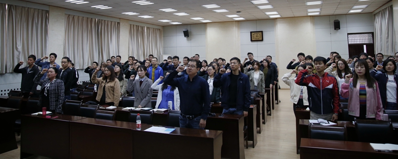 開班儀式上,武曉朦部長介紹了新入職教師培訓(xùn)的總體安排,并就培訓(xùn)紀(jì)律作了要求,隨后舉行了莊嚴(yán)的新入職教師集體宣誓儀式。此次新入職教師集體宣誓在我校是首次舉行,今后將把新入職教師集體宣誓活動作為教師入職培訓(xùn)的重要一課,引導(dǎo)廣大教師樹立立德樹人理念,增強(qiáng)新入職教師職業(yè)責(zé)任感和榮譽(yù)感。