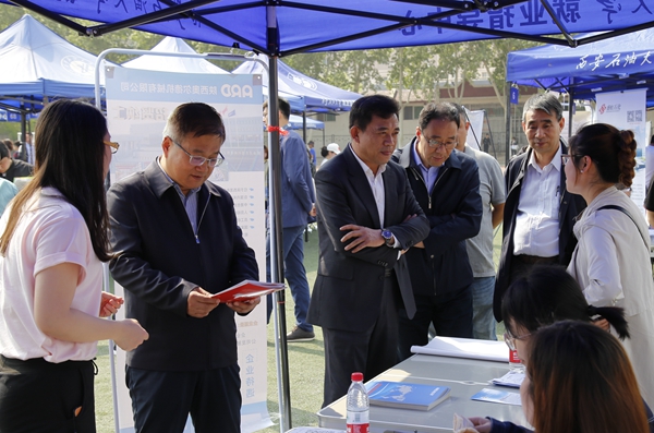 4月19日,陜西省高校2019屆少數(shù)民族畢業(yè)生聯(lián)盟招聘會(huì)在我校雁塔校區(qū)體育場(chǎng)舉行。此次招聘會(huì)由省教育廳和省國(guó)資委主辦,省高校學(xué)生就業(yè)指導(dǎo)中心和我校共同承辦。省委教育工委副書記李智軍、省教育廳副廳長(zhǎng)王紫貴到招聘會(huì)現(xiàn)場(chǎng)考察指導(dǎo)工作。我校黨委副書記張木、副校長(zhǎng)蘇文甫,省教育廳學(xué)生處、高校學(xué)生就業(yè)指導(dǎo)中心有關(guān)負(fù)責(zé)人陪同考察。來(lái)自全國(guó)各地220余家單位的400余名招聘代表、全省高校2000余人次畢業(yè)生參加了招聘會(huì)。