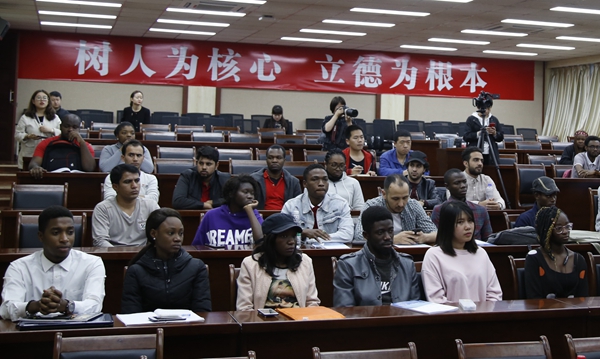 我校烏干達(dá)籍留學(xué)生羅納德代表所有培訓(xùn)學(xué)員發(fā)言。他感謝中心和學(xué)校為大家提供的培訓(xùn)機(jī)會(huì),表示一定不負(fù)期望,好好學(xué)習(xí),用自己的專業(yè)知識(shí)為中國和“一帶一路”沿線國家科技、文化交流做出應(yīng)有貢獻(xiàn)。