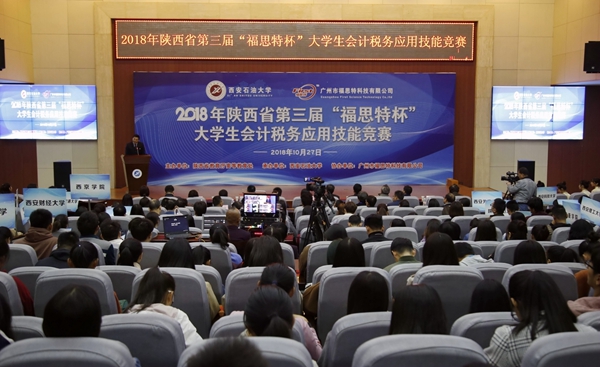 10月27日,由陜西省教育廳高等教育處主辦、西安石油大學(xué)承辦、廣州市福思特科技有限公司提供技術(shù)支持的2018年陜西省第三屆“福思特杯”大學(xué)生會(huì)計(jì)應(yīng)用技能競(jìng)賽暨“貫徹黨的十九大精神,推進(jìn)財(cái)稅技能精準(zhǔn)改革”研討會(huì)在鄠邑校區(qū)舉辦。陜西省財(cái)政廳副巡視員王素文,陜西省教育廳高等教育處趙登攀,西安石油大學(xué)副校長(zhǎng)楊戰(zhàn)社,西安交通大學(xué)管理學(xué)院會(huì)計(jì)與財(cái)務(wù)系主任田高良,陜西財(cái)經(jīng)職業(yè)技術(shù)學(xué)院副校長(zhǎng)范忠,廣州市福思特科技有限公司董事長(zhǎng)閆曉霞等出席比賽開幕式。我校實(shí)驗(yàn)室管理處處長(zhǎng)孟開元主持開幕式。