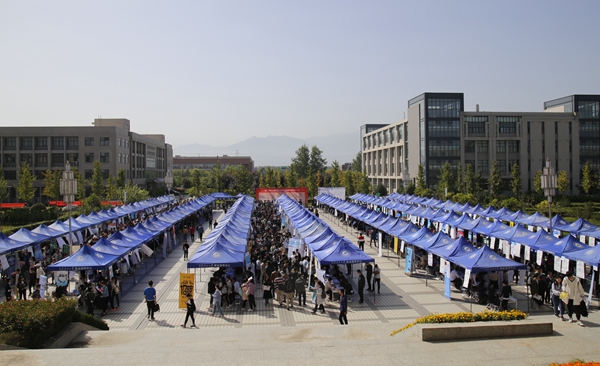9月28日,我校2019屆畢業(yè)生首場(chǎng)綜合招聘會(huì)在鄠邑校區(qū)圖書館南廣場(chǎng)舉辦。中國(guó)石油天然氣第一建設(shè)有限公司、中國(guó)石化第五建設(shè)有限公司、中化石油浙江有限公司、安東石油、盛虹石化集團(tuán)有限公司等300余家單位、600余名招聘代表參會(huì),我校及兄弟院校畢業(yè)生共計(jì)4000多人參加了本次招聘會(huì)。