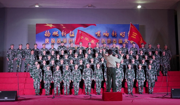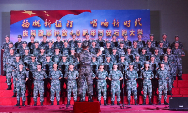 9月17日晚,我校“揚(yáng)帆新征程,唱響新時(shí)代——慶祝改革開放40周年西安石油大學(xué)2018級(jí)新生軍訓(xùn)歌詠比賽”在鄠邑校區(qū)西田徑場舉行。軍訓(xùn)領(lǐng)導(dǎo)小組組長、校黨委副書記張木,軍訓(xùn)旅司令部參謀長劉廣出席活動(dòng)。學(xué)生工作處、保衛(wèi)處、校團(tuán)委、教務(wù)處、鄠邑校區(qū)管理辦公室等相關(guān)部門負(fù)責(zé)人擔(dān)任評(píng)委,各院(系)軍訓(xùn)工作負(fù)責(zé)人及2018級(jí)全體新生一同觀看了比賽。
