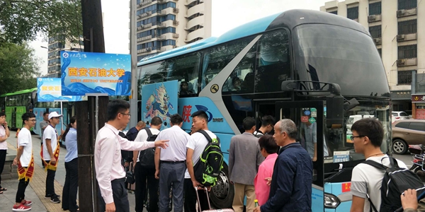 后勤管理處主要負(fù)責(zé)組織車輛從西安火車站接送新生及家長(zhǎng)到鄠邑校區(qū)。6日清晨六點(diǎn),在后勤管理處副處長(zhǎng)秦光義的帶領(lǐng)下,在西安火車站的迎新工作已拉開(kāi)序幕。接站組的工作人員用親切的微笑、熱誠(chéng)的服務(wù)讓來(lái)自五湖四海的新生及家長(zhǎng)對(duì)西石大留下了美好的第一印象。工作人員及學(xué)生志愿者幫助剛到站的新生及家長(zhǎng)提行李、搬物品,耐心解答新生及家長(zhǎng)的提問(wèn),一趟又一趟穿梭于接站點(diǎn)和班車之間。