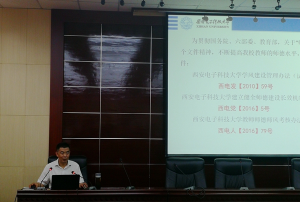 陜西省師德標兵、西安電子科技大學千博教授作了題為《新時代下高校教師師德培養(yǎng)》的講座。他講到,新時代下師德的內涵應包含:第一是愛心,熱愛是最好的老師,愛學生才有對學生的關心;第二是事業(yè)心,把教書育人作為事業(yè)終身追求,嚴格自律,不斷摸索提升,才有上進心;第三是責任心,時刻牢記自己的責任,對學生、對學校、對社會、對家庭,要積極擔當,才會時時處處用心;第四是謙卑心,總是看到別人的長處、看到自己的短處,嚴格要求自己,努力學習,勤于積累,才會虛心;第五是進取心,教學科研結合,豐富知識積累,創(chuàng)新培養(yǎng)方式,才能不斷滿足干事業(yè)的進取心。
