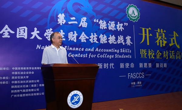 校黨委書記賽云秀在致辭中簡要介紹了我校的發(fā)展歷程和財(cái)會(huì)專業(yè)的特色優(yōu)勢,指出承辦第二屆“能源杯”財(cái)會(huì)技能挑戰(zhàn)賽是教育界、企業(yè)界對(duì)我校的充分信任,是我校進(jìn)一步提升應(yīng)用型財(cái)會(huì)專業(yè)人才培養(yǎng)水平的重要契機(jī)。他表示,全校師生一定會(huì)積極探索、勇于挑戰(zhàn),將“能源杯”辦成我國財(cái)會(huì)類專業(yè)建設(shè)經(jīng)驗(yàn)交流的盛會(huì),源源不斷地向社會(huì)輸送財(cái)會(huì)人才。