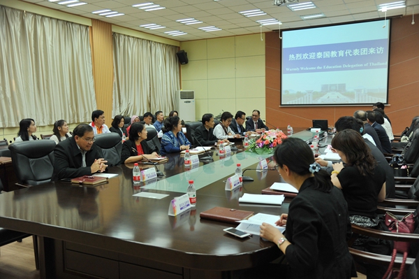 19日下午,雙方在我校雁塔校區(qū)會議中心第一會議室召開合作座談會,陳軍斌副校長主持。國際教育學(xué)院負(fù)責(zé)人介紹了我校的國際化發(fā)展及國際教育情況。隨后,雙方著重就在泰共建國際教育基地、來華留學(xué)專業(yè)需求、本科及研究生培養(yǎng)情況、漢語教學(xué)管理、教師交流、學(xué)生錄取等議題進行了深入交流,并對下一步的合作達成了初步意向。