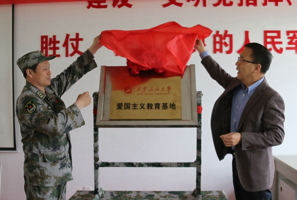 簽約儀式上,校黨委副書記雷西合與32144部隊副政委徐洪剛代表雙方簽署《共建共育協(xié)議書》,并共同為“西安石油大學(xué)愛國主義教育基地”揭牌。雙方一致同意將通過愛國主義教育基地等多種共建形式,全面開展共建共育工作,進一步做好大學(xué)生革命傳統(tǒng)教育和愛國主義、革命英雄主義教育和部隊官兵文化知識、專業(yè)技能培訓(xùn)工作,真正實現(xiàn)資源共享、優(yōu)勢互補。