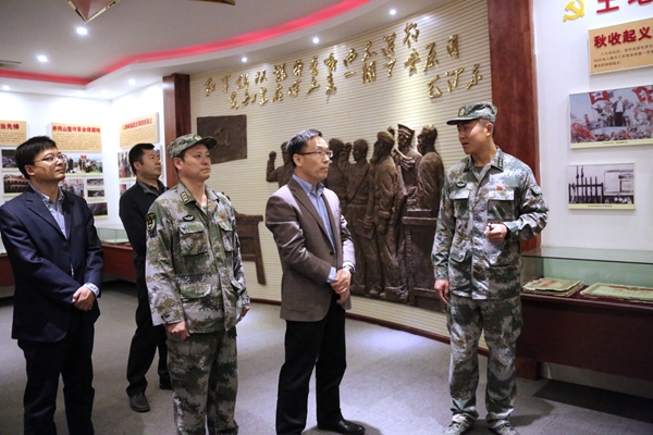校黨委副書記雷西合、副校長蘇文甫一行9人還在部隊領(lǐng)導(dǎo)的陪同下共同觀看了部隊宣傳片,參觀了開創(chuàng)“支部建在連上”先河的紅一連連史館、連隊榮譽室、官兵宿舍和連隊部分武器裝備。