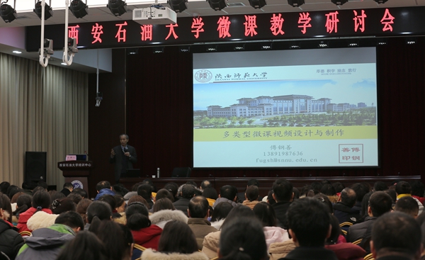 陳軍斌副校長在會議上致辭。他指出,微課作為在線開放課程的“濃縮版”和“精華版”,具有重要的價值和意義。微課的時長雖然較短,但能夠有效促進(jìn)教育教學(xué)創(chuàng)新,能夠大大提高學(xué)生的自主學(xué)習(xí)效果。他希望通過召開本次教學(xué)研討會,搭起陜西高校間微課教學(xué)領(lǐng)域溝通的橋梁,進(jìn)一步改進(jìn)教育教學(xué)方法,促進(jìn)教師教學(xué)能力的提升。