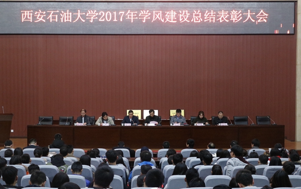 會上表彰了2016-2017年學(xué)風(fēng)建設(shè)年先進(jìn)單位、國家獎學(xué)金獲得者、中國石油獎學(xué)金獲得者、優(yōu)良學(xué)風(fēng)班、先進(jìn)班集體、主題班團(tuán)會優(yōu)秀班級、素質(zhì)拓展優(yōu)秀團(tuán)隊、三好學(xué)生、優(yōu)秀學(xué)生干部、文明宿舍、標(biāo)兵宿舍等先進(jìn)集體和個人。石油工程學(xué)院黨委副書記張建高代表學(xué)風(fēng)建設(shè)年先進(jìn)單位作了經(jīng)驗交流發(fā)言。計算機(jī)學(xué)院通信1502班王胤禛、經(jīng)濟(jì)管理學(xué)院ACA1602班曹璋穎兩位同學(xué)分別代表先進(jìn)集體和先進(jìn)個人作了發(fā)言。