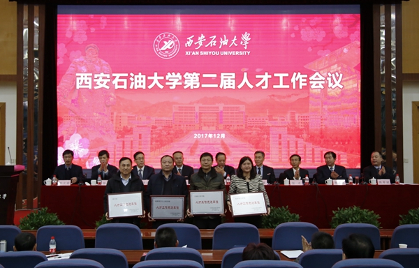 會上,校黨委書記賽云秀,紀(jì)委書記李延平,副校長楊戰(zhàn)社、陳軍斌、蘇文甫分別宣讀了學(xué)校人才工作先進單位表彰決定和頒獎詞,并為石油工程學(xué)院、材料科學(xué)與工程學(xué)院、化學(xué)化工學(xué)院和理學(xué)院4家人才工作先進單位進行了頒獎。先進單位代表化學(xué)化工學(xué)院院長王文珍教授、青年人才代表理學(xué)院折延宏教授分別作了交流發(fā)言。人事處處長程永清匯報了學(xué)?!笆濉币詠砣耸氯瞬殴ぷ?。
