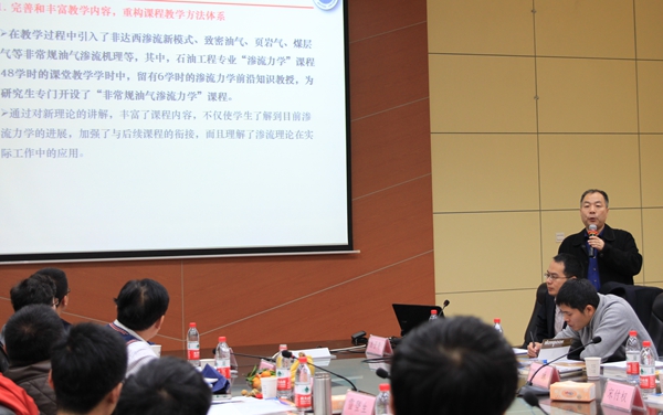 石油工業(yè)出版社高教分社社長徐秀澎介紹了此次研討會的組織過程。其他石油高?!皾B流力學(xué)”課程負(fù)責(zé)人介紹了本?!皾B流力學(xué)”課程建設(shè)方面的相關(guān)經(jīng)驗。大家圍繞“滲流力學(xué)”課程建設(shè)的已有做法、未來規(guī)劃及存在問題進(jìn)行了充分交流。