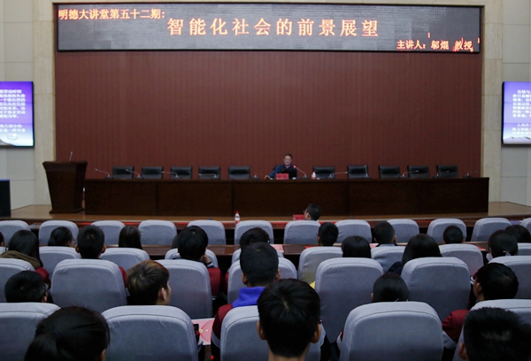 11月14日下午,由黨委宣傳部、校團(tuán)委共同主辦的第52期明德大講堂《智能化社會(huì)的前景展望》在鄠邑校區(qū)圖書(shū)館弘石學(xué)術(shù)報(bào)告廳舉辦。西安交通大學(xué)國(guó)際信息哲學(xué)研究中心主任鄔焜教授擔(dān)任主講,鄠邑校區(qū)400余名師生聽(tīng)取了講座。
