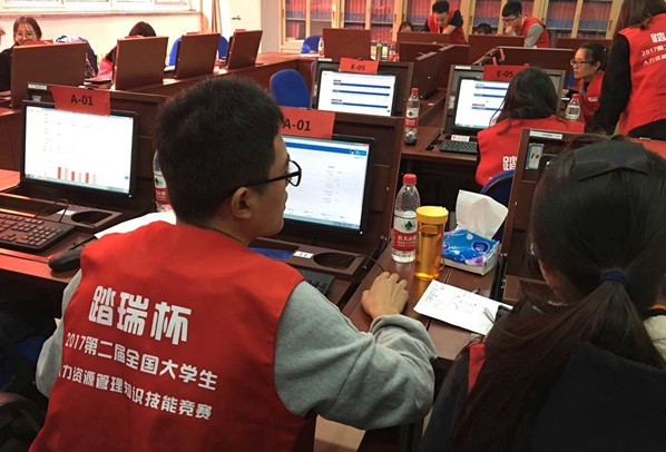 本次大賽是由全國人力資源開發(fā)研究會主辦,由上海踏瑞計(jì)算機(jī)軟件有限公司提供全面技術(shù)支持,面向全國人力資源管理專業(yè)大學(xué)生舉辦的一項(xiàng)重要賽事。為了在比賽中取得優(yōu)異成績,我校隊(duì)員從9月初就開始訓(xùn)練,隊(duì)員們前期熟悉比賽規(guī)則和流程,然后通過反復(fù)實(shí)戰(zhàn)模擬對抗積累經(jīng)驗(yàn),最后分析總結(jié)形成自己的作戰(zhàn)戰(zhàn)略。比賽分為綜合實(shí)訓(xùn)賽、競爭對抗賽和團(tuán)隊(duì)答辯賽三個(gè)環(huán)節(jié),我校隊(duì)員沉著應(yīng)對,展示了良好的精神面貌和較強(qiáng)的專業(yè)技能。