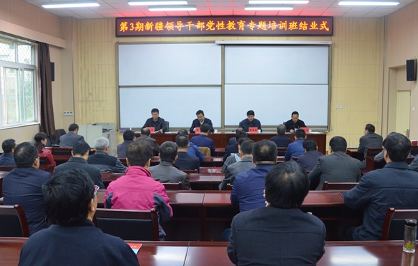 10月31日上午,由中國延安干部學(xué)院主辦的“第3期新疆領(lǐng)導(dǎo)干部黨性教育專題培訓(xùn)班”在我校明德校區(qū)培訓(xùn)中心順利結(jié)業(yè)。中國延安干部學(xué)院副院長靳銘出席并講話。中國延安干部學(xué)院培訓(xùn)部學(xué)員二處處長楊文翔主持結(jié)業(yè)式。38名來自全疆黨政機(jī)關(guān)的廳、處級領(lǐng)導(dǎo)干部學(xué)員參加結(jié)業(yè)式。