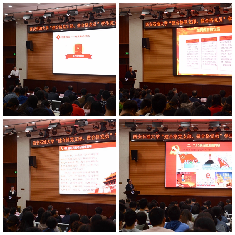 在黨的十九大勝利召開(kāi)之際,為加強(qiáng)黨支部書(shū)記工作交流,落實(shí)“三會(huì)一課”制度,推進(jìn)“兩學(xué)一做”學(xué)習(xí)教育常態(tài)化制度化,10月23日、10月24日晚,我校分別在雁塔校區(qū)學(xué)術(shù)報(bào)告廳和鄠邑校區(qū)就業(yè)指導(dǎo)中心多功能廳成功舉辦了“建合格黨支部、做合格黨員”教工黨支部書(shū)記和學(xué)生黨支部書(shū)記講黨課比賽。校黨委副書(shū)記雷西合出席大賽并講話。校黨委各部(辦)、院(系)級(jí)單位黨組織部分負(fù)責(zé)人和馬克思主義學(xué)院教師代表?yè)?dān)任比賽評(píng)委。各院(系)級(jí)單位黨組織書(shū)記、副書(shū)記,全校各黨支部書(shū)記及委員和黨員代表觀摩了本次比賽。