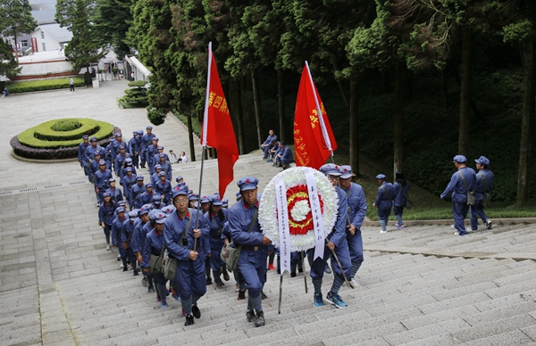 在井岡山烈士陵園,學(xué)員們走進(jìn)青松環(huán)抱、鮮花盛開(kāi)的紀(jì)念大廳,在毛澤東同志書(shū)寫(xiě)的“死難烈士萬(wàn)歲”的巨幅牌匾前,大家懷著崇敬的心情向長(zhǎng)眠在此的英烈們敬獻(xiàn)了花圈。