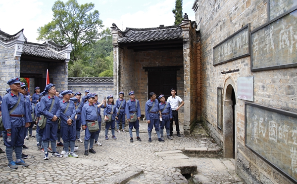 在井岡山期間,全體學(xué)員戴上紅軍帽、穿上紅軍服,先后在井岡山革命博物館、茨坪毛澤東故居、井岡山革命烈士陵園、茅坪八角樓、朱毛會(huì)師舊址、黃洋界、紅軍挑糧小道、小井紅軍醫(yī)院等場(chǎng)所進(jìn)行了現(xiàn)場(chǎng)教學(xué)。學(xué)員們親身體驗(yàn)了紅軍當(dāng)年進(jìn)行革命斗爭(zhēng)的艱難歷程,深切緬懷了毛澤東、朱德、彭德懷、陳毅等老一輩無(wú)產(chǎn)階級(jí)革命家創(chuàng)建井岡山革命根據(jù)地的豐功偉績(jī)。