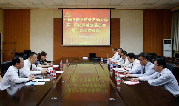 6月23日下午,中國共產(chǎn)黨西安石油大學新一屆紀律檢查委員會第一次全體會議在雁塔校區(qū)會議中心第二會議室召開,李延平同志主持會議,9名新當選的紀委委員參加會議。