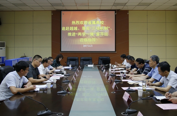 賽云秀書記對賈崇吉一行來校開展督導工作表示歡迎,并從三個方面介紹了我校追趕超越工作的開展情況。一是制定了關于追趕超越工作的相關方案,提出了追趕超越十項重點工作。校領導分別牽頭負責十項重點工作,各牽頭單位和配合單位負責細化任務,組織實施。二是明確追趕超越工作的方法和路徑,全力推進追趕超越工作。追趕超越的目標不是單一的,首先要跟自己比,其次跟對標單位比,再次跟更高層次的目標比,在“比學趕幫超”中提高辦學水平。三是明確考核指標和考核要求,緊抓追趕超越工作落實。通過自查(評)和互查(評)相結合、巡視檢查、雙周研判等方式,學校對各部門目標任務完成情況進行考核,并將考核情況作為季度考核和年終考核的重要依據(jù)。