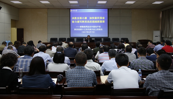 會上,省第十三次黨代會代表賽云秀書記組織學習了省委書記婁勤儉代表中共陜西省第十二屆委員會向大會作的《決勝全面小康,加快富民強省,奮力譜寫陜西追趕超越新篇章》的工作報告。報告共分四個部分:一、過去五年工作的基本總結;二、陜西未來發(fā)展的根本遵循;三、努力推動陜西發(fā)展實現(xiàn)新的跨越;四、深入推進黨的建設新的偉大工程。賽書記重點就報告中涉及的教育方面工作深入解讀,并結合我校實際,對落小落實落細省黨代會精神提出了明確要求。