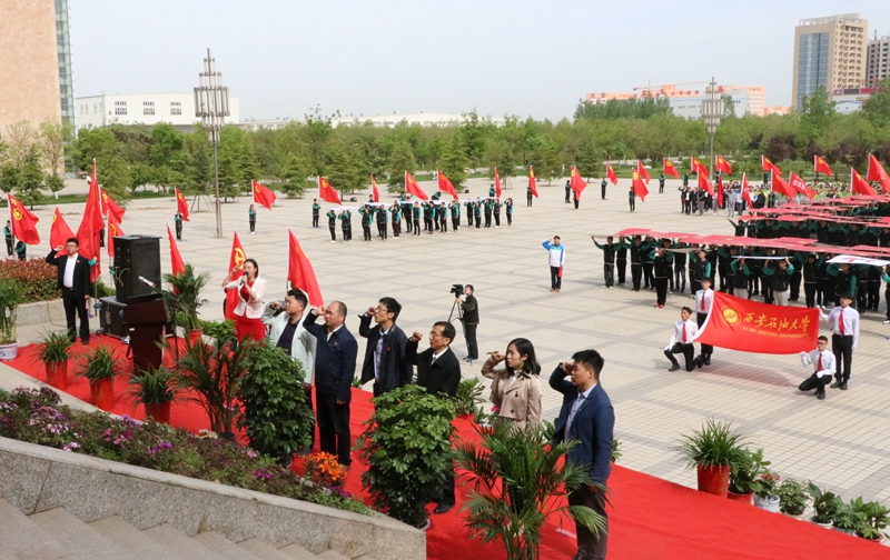 4月21日上午,為紀念建團九十五周年,深入開展“學習習近平總書記講話,做合格共青團員”教育實踐,大力推進從嚴治團,切實增強團員的先進性和光榮感,我校團委在新校區(qū)圖書館北廣場隆重舉辦“不忘初心跟黨走”紀念建團九十五周年活動啟動儀式暨千人重溫入團誓詞活動。校黨委副書記張木、團省委學校部部長潘磊出席活動。西安建筑科技大學、西安體育學院、陜西國防工業(yè)職業(yè)技術學院、西安醫(yī)學高等??茖W校等四所駐戶縣兄弟院校和我校團委負責人,各院(系)團委書記、團干部及新校區(qū)1500余名團員青年參加了活動。