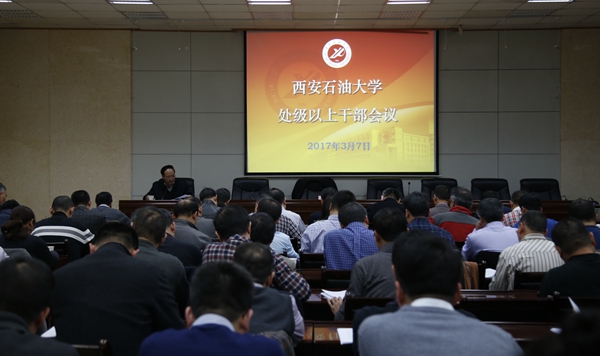 3月7日下午,我校在第三會議室召開處級以上干部會議,傳達(dá)學(xué)習(xí)全省貫徹黨的十八屆六中全會精神研討班、高校思想政治工作會議、黨風(fēng)廉政建設(shè)工作會議和穩(wěn)定安全工作會議精神,安排部署學(xué)校有關(guān)工作。全體校領(lǐng)導(dǎo)、處級干部參加了會議,會議由校黨委書記賽云秀主持。