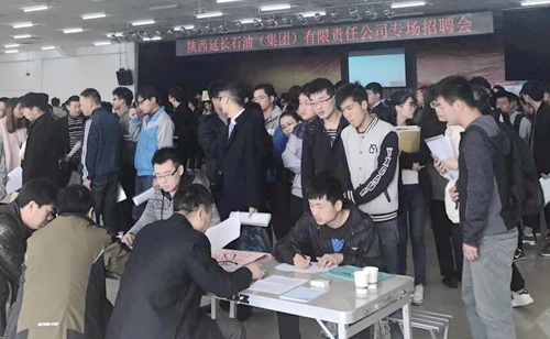 3月8日上午,陜西延長石油(集團)有限責(zé)任公司專場招聘會在騰輝大學(xué)生活動中心舉行。陜西延長石油(集團)有限責(zé)任公司下屬的12家單位、20余名招聘代表來校選聘畢業(yè)生。全校相關(guān)專業(yè)2000余名畢業(yè)生有序參會。