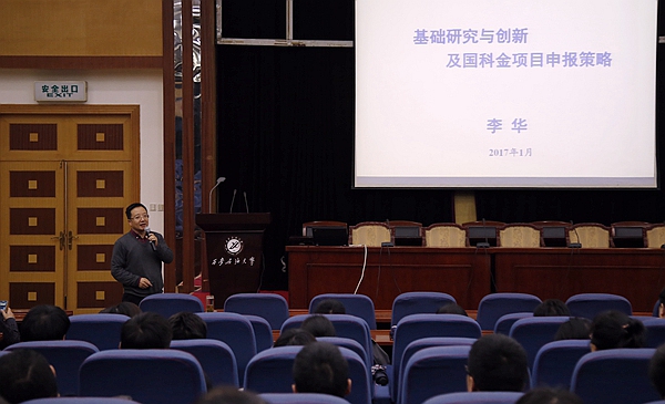 李華副校長(zhǎng)為大家作了題為《基礎(chǔ)研究與創(chuàng)新及國(guó)家科學(xué)基金申報(bào)策略》的專題報(bào)告。他結(jié)合自己的科研經(jīng)歷和擔(dān)任自然科學(xué)基金項(xiàng)目評(píng)審專家的經(jīng)驗(yàn),耐心細(xì)致地講解了國(guó)家科學(xué)基金項(xiàng)目的類型、資助情況、申請(qǐng)書(shū)撰寫(xiě)技巧、專家評(píng)議標(biāo)準(zhǔn),以及2017年度國(guó)家基金委工作部署情況等,強(qiáng)調(diào)在基金申報(bào)時(shí)要聚焦基礎(chǔ)和學(xué)科前沿問(wèn)題,扎實(shí)認(rèn)真地做好具體工作。他鼓勵(lì)廣大教師在申報(bào)國(guó)家科學(xué)基金的過(guò)程中,要樹(shù)立信心,堅(jiān)持不懈,克服畏難心理,深入挖掘自身潛力,提升申報(bào)質(zhì)量;要針對(duì)重點(diǎn)學(xué)科和領(lǐng)域集中申報(bào),力爭(zhēng)在2017年度國(guó)家科學(xué)基金申報(bào)中取得佳績(jī)。李華副校長(zhǎng)的報(bào)告內(nèi)容豐富、生動(dòng)精彩,報(bào)告結(jié)束后他還解答了大家提出的各種問(wèn)題。