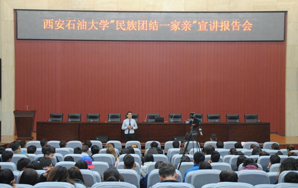 11月16日晚,教育部民族團結宣講團在新疆維吾爾自治區(qū)內學辦主任科員帕蒂古力·莫明的帶領下一行4人來我校新校區(qū)開展宣講活動。宣講團成員包括自治區(qū)黨委宣傳部講師團成員努爾曼古麗?加瑪麗、國家民委艾力喀木江?艾海提、沈陽建筑大學輔導員努爾麥麥提·吐爾孫。我校學生工作部負責人和全校200余名新疆籍少數(shù)民族學生參加了宣講會。