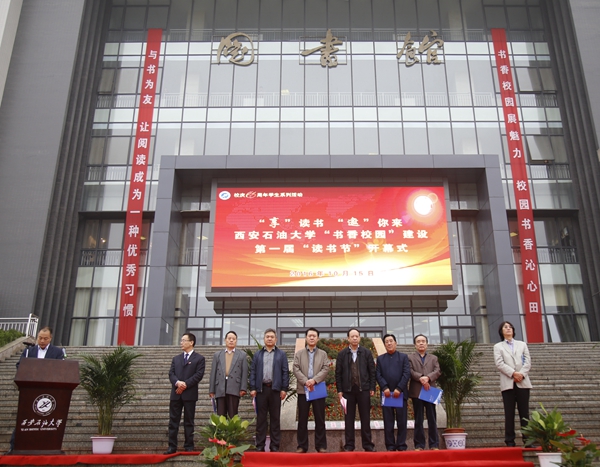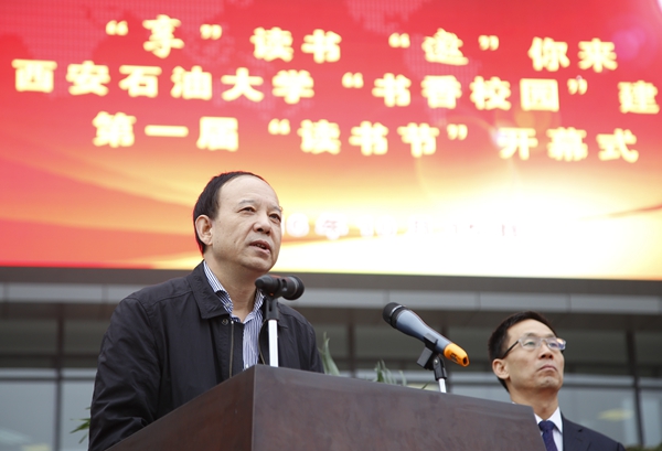 10月15日上午,我?!皶阈@”建設(shè)第一屆讀書節(jié)開幕式在新校區(qū)圖書館南廣場隆重舉行。校黨政領(lǐng)導(dǎo)賽云秀、雷西合、陳軍斌,國家一級作家、省文聯(lián)副主席、省作協(xié)副主席高建群,我校人文學(xué)院教授王心劍,省圖書館、省新聞出版廣電局、嘉匯漢唐圖書有限責(zé)任公司相關(guān)領(lǐng)導(dǎo)、嘉賓出席開幕式。我校相關(guān)部門、各院(部、系)負責(zé)人,全體輔導(dǎo)員及學(xué)生代表參加了開幕式。副校長陳軍斌主持開幕式。