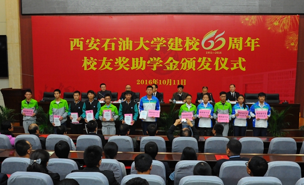 齊仲鋒副處長還宣讀了《西安石油大學(xué)2016年弘石基金表彰決定》;騰輝捐資人、機(jī)械工程學(xué)院院長竇益華教授宣讀了《2016年騰輝助學(xué)金受助學(xué)生名單》。