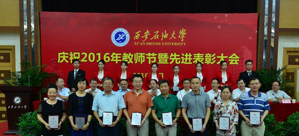 會(huì)上,校領(lǐng)導(dǎo)對《西安石油大學(xué)關(guān)于表彰獎(jiǎng)勵(lì)“教書育人30年”教師的決定》,榮獲2015年國家級、省部級科技成果獎(jiǎng)勵(lì)項(xiàng)目名單,2015年陜西省教學(xué)成果獎(jiǎng)獲獎(jiǎng)名單,2016年陜西省優(yōu)秀教材獎(jiǎng)獲獎(jiǎng)名單,2016年“陜西省教學(xué)名師”教師名單,2016年陜西省師德先進(jìn)個(gè)人和師德建設(shè)先進(jìn)集體名單,《中共西安石油大學(xué)委員會(huì) 西安石油大學(xué)關(guān)于表彰2016年優(yōu)秀教師 先進(jìn)教育工作者的決定》《中共西安石油大學(xué)委員會(huì) 西安石油大學(xué)關(guān)于表彰2016年師德建設(shè)先進(jìn)集體和師德先進(jìn)個(gè)人的決定》進(jìn)行了宣讀,并為受表彰教職工頒發(fā)了榮譽(yù)證書和獎(jiǎng)牌?!敖虝?0年教師”代表、陜西省師德標(biāo)兵劉振華教授做了發(fā)言。