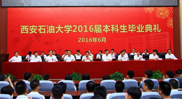 副校長李天太宣讀了《西安石油大學(xué)關(guān)于2016屆學(xué)生準予畢業(yè)、頒發(fā)畢業(yè)證和授予學(xué)士學(xué)位的決定》;紀委書記李延平宣讀了《西安石油大學(xué)關(guān)于表彰2016屆優(yōu)秀畢業(yè)生的決定》;黨委副書記張木宣讀了《西安石油大學(xué)校友總會關(guān)于聘任2016屆校友年級理事的決定》。與會校領(lǐng)導(dǎo)為優(yōu)秀畢業(yè)生代表頒發(fā)了榮譽證書,為年級理事代表頒發(fā)了聘任證書和紀念品,并向全體畢業(yè)生贈送了紀念品。