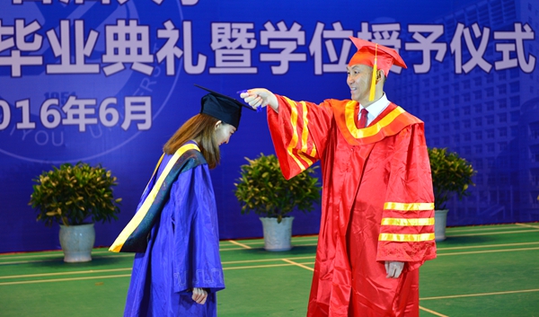 在學位授予儀式上,屈展校長為2016屆400余名碩士研究生逐一授予學位、頒發(fā)學位證書,并與每一位畢業(yè)研究生合影留念。