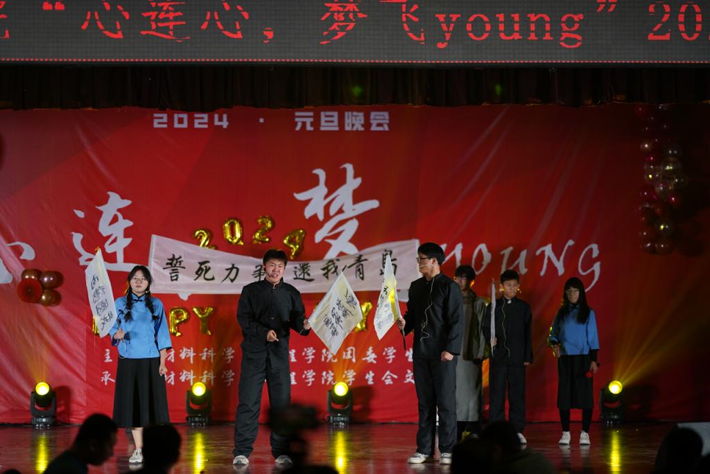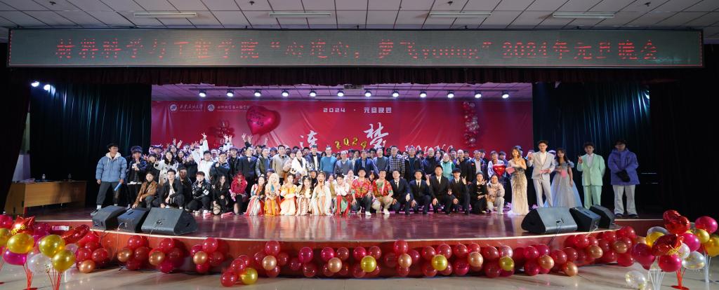 萬象更新,喜迎元旦。12月24日晚,材料科學(xué)與工程學(xué)院在鄠邑校區(qū)騰輝大學(xué)生活動中心舉辦“心連心,夢飛young”2024年元旦晚會,副校長張驍勇,校黨委宣傳部常務(wù)副部長趙承勝、學(xué)生工作部部長王亮、學(xué)院黨委書記林紅先出席晚會,學(xué)院黨委副書記張云姿,各學(xué)院教師及學(xué)生等400余人觀看晚會。