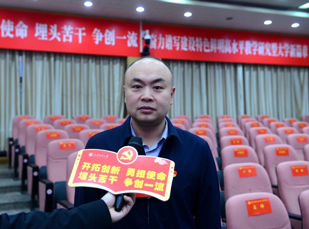 常江同志在中國共產(chǎn)黨西安石油大學第三次代表大會開幕式上所作的報告,主題鮮明、重點突出、措施有力,為建設特色鮮明高水平教學研究型大學擘畫了新藍圖,開啟了新征程,鼓舞人心,催人奮進,增強了西石大人共創(chuàng)未來的信心和底氣。作為西石大學工人,我們將繼續(xù)在學校黨委的正確領導下,深入學習貫徹習近平新時代中國特色社會主義思想,落實立德樹人根本任務,牢記為黨育人、為國育才的初心使命,立足本職崗位,主動作為、銳意進取,深入實施“時代新人鑄魂工程”,加強大學生思想政治教育工作,為培養(yǎng)擔當民族復興大任的時代新人作出更大的貢獻。