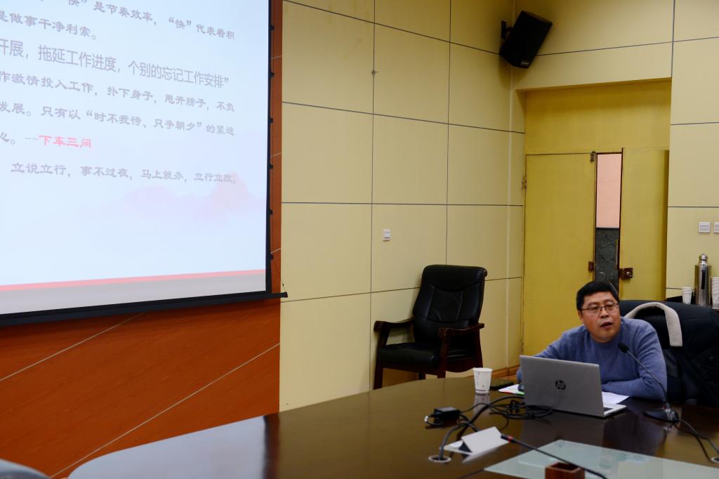 會前,教務(wù)處邀請馬克思主義學(xué)院黨總支書記張偉作了題為《弘揚鐵人精神 踐行優(yōu)良作風》的專題報告,報告從鐵人簡介談起,并從鐵人精神內(nèi)涵、作風建設(shè)重要意義、踐行優(yōu)良作風三個方面全面闡述。報告內(nèi)涵豐富、目標明確,對本科教育教學(xué)工作起到一定的實踐指導(dǎo)意義。