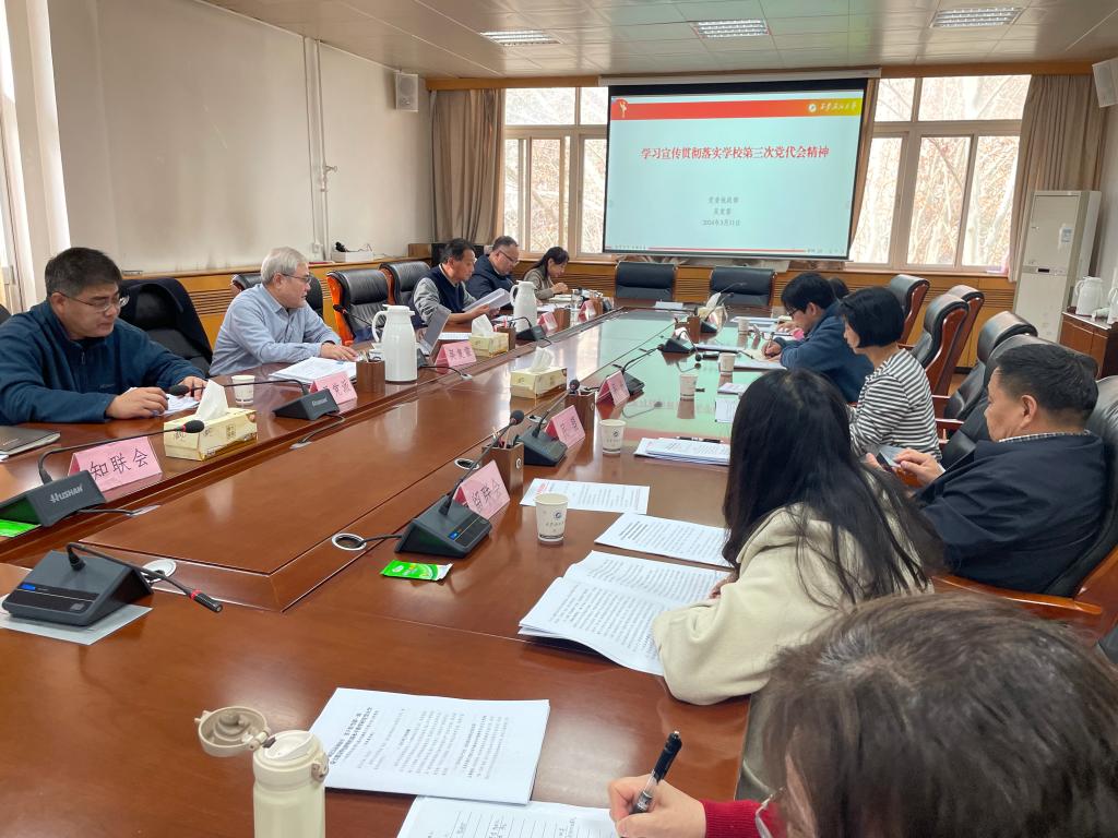 會(huì)上,吳復(fù)雷談到第三次黨代會(huì)是在學(xué)校大力實(shí)施“十四五”發(fā)展規(guī)劃,加快推進(jìn)高水平大學(xué)建設(shè)的關(guān)鍵時(shí)期,召開(kāi)的一次十分重要的大會(huì),極大地提振了廣大師生員工的干勁和熱情,為未來(lái)五年乃至更長(zhǎng)時(shí)間學(xué)校改革發(fā)展繪就了宏偉藍(lán)圖、指明了前進(jìn)方向。隨后,他圍繞 “銳意進(jìn)取、全面發(fā)展的六年”“勇?lián)抡鞒躺系男率姑薄皧^力譜寫(xiě)學(xué)校高質(zhì)量發(fā)展的新篇章”“全面加強(qiáng)新時(shí)代學(xué)校黨的建設(shè)”等四方面對(duì)學(xué)校第三次黨代會(huì)精神進(jìn)行了深入解讀。他就貫徹落實(shí)黨代會(huì)精神提出了三點(diǎn)希望,一是各民主黨派、無(wú)黨派人士、統(tǒng)戰(zhàn)團(tuán)體要充分認(rèn)識(shí)學(xué)校第三次黨代會(huì)的重大意義,增強(qiáng)學(xué)習(xí)貫徹的責(zé)任感和緊迫感;二是要精心組織學(xué)習(xí)宣傳貫徹第三次黨代會(huì)精神,引導(dǎo)廣大統(tǒng)一戰(zhàn)線成員深刻認(rèn)識(shí)“面向三個(gè)階段”“立足四個(gè)現(xiàn)實(shí)”“堅(jiān)持五條經(jīng)驗(yàn)”“實(shí)施六大行動(dòng)”“實(shí)現(xiàn)七個(gè)目標(biāo)”等,自覺(jué)把思想和行動(dòng)統(tǒng)一到黨代會(huì)精神上來(lái);三是對(duì)照學(xué)校發(fā)展藍(lán)圖,廣泛凝聚共識(shí),匯集奮進(jìn)力量,以實(shí)際行動(dòng)為建成特色鮮明的高水平教學(xué)研究型大學(xué)不斷貢獻(xiàn)力量。