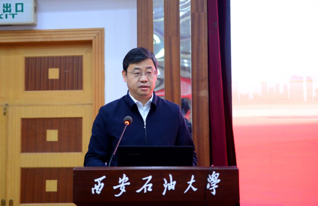 王進(jìn)富在致辭中對參加學(xué)習(xí)研討會的各位領(lǐng)導(dǎo)和專家表示熱烈的歡迎,并從落實能源安全、強(qiáng)化能源儲備、加大油氣戰(zhàn)略礦產(chǎn)資源的勘探開采力度等方面分析了實現(xiàn)能源經(jīng)濟(jì)高質(zhì)量發(fā)展的重要性。他介紹了學(xué)校第三次黨代會擘畫的“六大行動”和“七個目標(biāo)”,表示學(xué)校各項工作要以全國兩會精神和黨代會精神為指導(dǎo),努力實現(xiàn)高質(zhì)量發(fā)展。