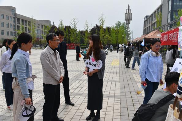 活動(dòng)現(xiàn)場(chǎng),張木親臨每個(gè)展臺(tái),并與學(xué)生們交流了生活、學(xué)習(xí)、人際交往的感受,向院(系)心理專干和班級(jí)心理委員了解了“一院一品”創(chuàng)意與日常工作中的困難,在各展臺(tái)詢問了每項(xiàng)活動(dòng)的心理意義,并參與體驗(yàn)了一些項(xiàng)目,對(duì)此次“油緣會(huì)”戶外體驗(yàn)活動(dòng)給予了充分肯定,并鼓勵(lì)多舉辦師生喜聞樂見的心理育人實(shí)踐活動(dòng)。