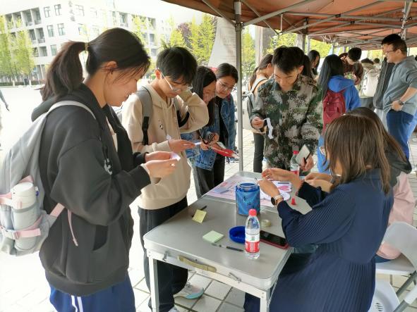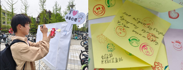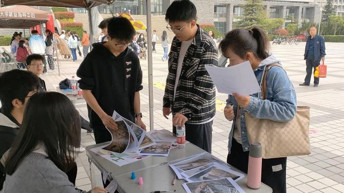 地球科學(xué)與工程學(xué)院、電子工程學(xué)院組織的“以德育心”展臺(tái)主題分別為“妙筆騫行”和“時(shí)光膠囊”,讓同學(xué)們?cè)诨顒?dòng)中體驗(yàn)情緒、認(rèn)知自我,直面時(shí)光流逝,學(xué)會(huì)珍惜時(shí)間。