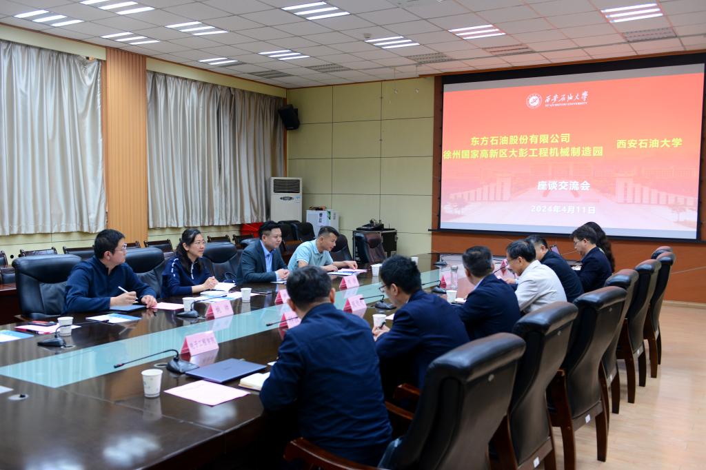 4月11日,由東方石油股份有限公司董事長、總經(jīng)理劉浩,徐州國家高新區(qū)大彭工程機械制造園分管負責(zé)人、大彭鎮(zhèn)黨委委員、副鎮(zhèn)長尹靜靜一行來校進行政、企、校合作交流。交流會在雁塔校區(qū)西階第一會議室舉行,學(xué)校黨委副書記張木出席會議,合作發(fā)展處處長覃彪長主持了會議。