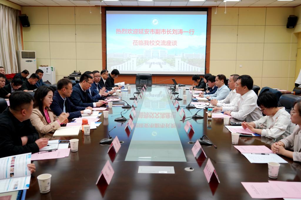 座談會上,張榮軍對劉濤一行到訪學校表示熱烈歡迎,對延安市長期以來對學校發(fā)展的支持與幫助表示感謝,并介紹了學校的發(fā)展歷程和近年來取得的成績。他指出,近年來我校與延安市在科學研究、人才培養(yǎng)、科技成果轉(zhuǎn)化等方面開展了形式多樣的交流合作,取得了豐碩的成果,也結(jié)下了深厚的合作友誼。他希望通過本次交流,進一步夯實雙方的合作基礎(chǔ),發(fā)揮好各自優(yōu)勢和特色,進一步創(chuàng)新機制、拓寬領(lǐng)域、搭建平臺,深入推進校地校企融合、科教融合、產(chǎn)教融合。他強調(diào),在深化交流合作的新征程上,也非常期待雙方繼續(xù)保持密切交流,厚植情誼,共同探討產(chǎn)學研合作的新模式、新路徑,共同為延安市經(jīng)濟高質(zhì)量發(fā)展提供技術(shù)和人才支撐。