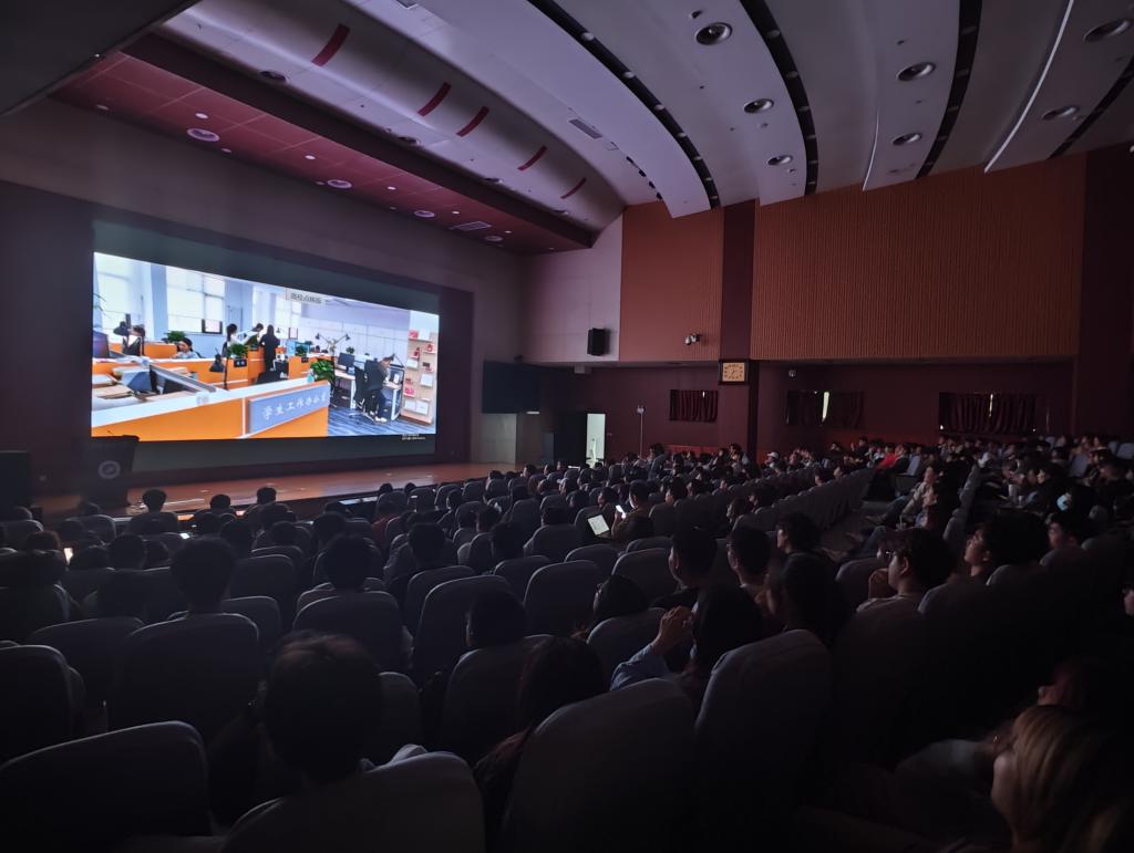 “好的思想政治工作應(yīng)該像鹽,但不能光吃鹽,最好的方式是將鹽溶解到各種食物中自然而然吸收?!?月16日下午,全國(guó)首部思政課題材影片《我要當(dāng)老師》在我校鄠邑校區(qū)弘石學(xué)術(shù)報(bào)告廳專場(chǎng)點(diǎn)映。校黨委副書(shū)記、紀(jì)委書(shū)記、省監(jiān)委駐校監(jiān)察專員王輝強(qiáng)出席觀影活動(dòng),黨委宣傳部主要負(fù)責(zé)人、思政課教師、輔導(dǎo)員代表、學(xué)生代表近400名師生參加了觀影活動(dòng),同上一堂思政大課。