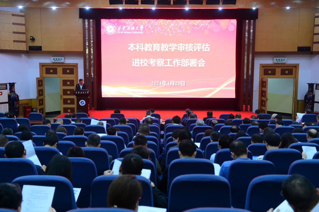為做好2024年4月29日開始的本科教育教學(xué)審核評估進校評估考察工作,4月23日上午,學(xué)校在雁塔校區(qū)會議中心學(xué)術(shù)報告廳召開本科教育教學(xué)審核評估進??疾旃ぷ鞑渴饡?。全體校領(lǐng)導(dǎo),校本科教學(xué)督導(dǎo)組組長、副組長,全體處級干部參加了會議。會議由校黨委副書記張木主持。