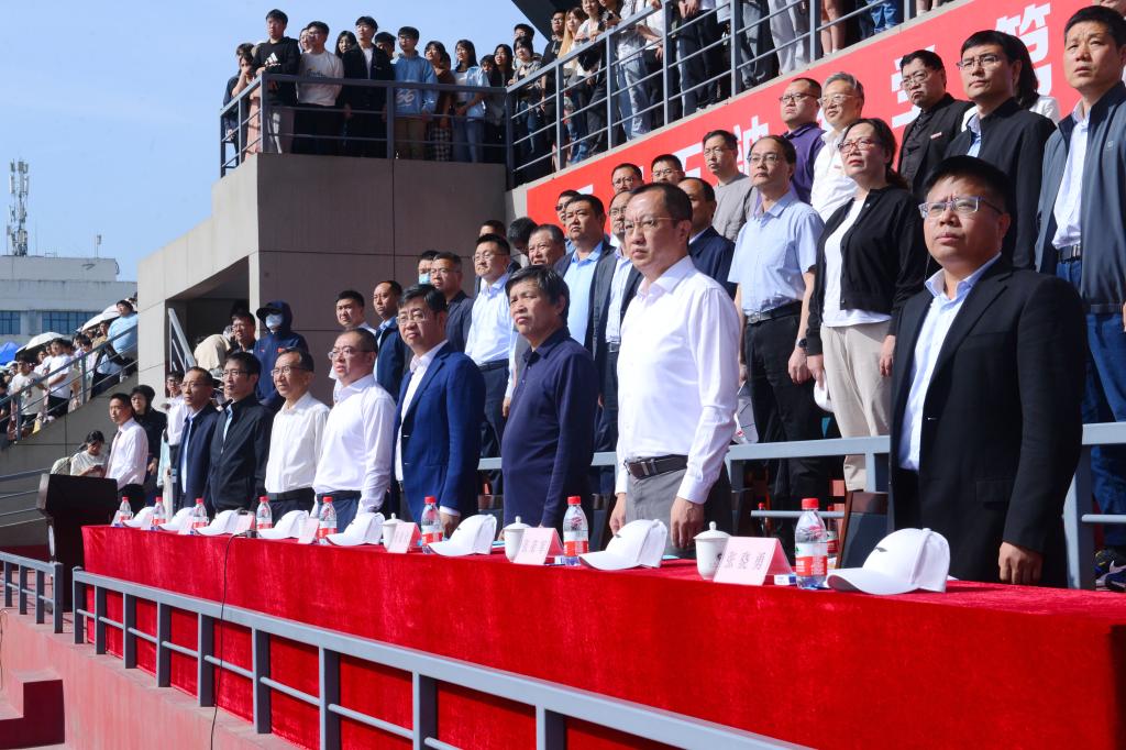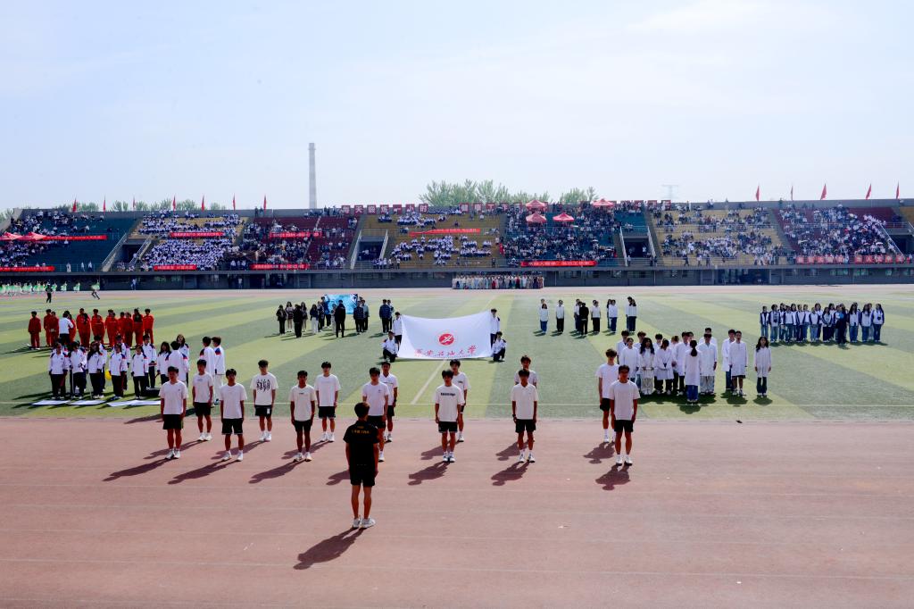 副校長、校體育運動委員會主任張君濤致開幕辭。他首先代表學(xué)校向運動會的順利召開致以熱烈祝賀,向為本次運動會付出辛勤勞動的教職員工和同學(xué)們表示衷心的感謝。他談到,學(xué)校體育是實現(xiàn)“三全育人”和實現(xiàn)“五育融合”的重要環(huán)節(jié)。長期以來,學(xué)校高度重視體育工作,始終堅持“以人為本,健康第一”的體育教育思想,全面落實“健康教育、終身體育”的體育教學(xué)理念,營造了良好的校園體育活動氛圍。在過去的一年里,學(xué)校各項體育競賽活動蓬勃開展,廣大學(xué)子在眾多體育賽事中取得了優(yōu)異成績,為學(xué)校贏得了榮譽。他希望全體師生能夠堅持體育鍛煉,鍛造健康體魄,為學(xué)校發(fā)展作出更大貢獻。同時,也希望全體運動員、教練員、裁判員通力合作,把本屆運動會辦成一次“文明、熱烈、精彩、圓滿”的體育盛會。