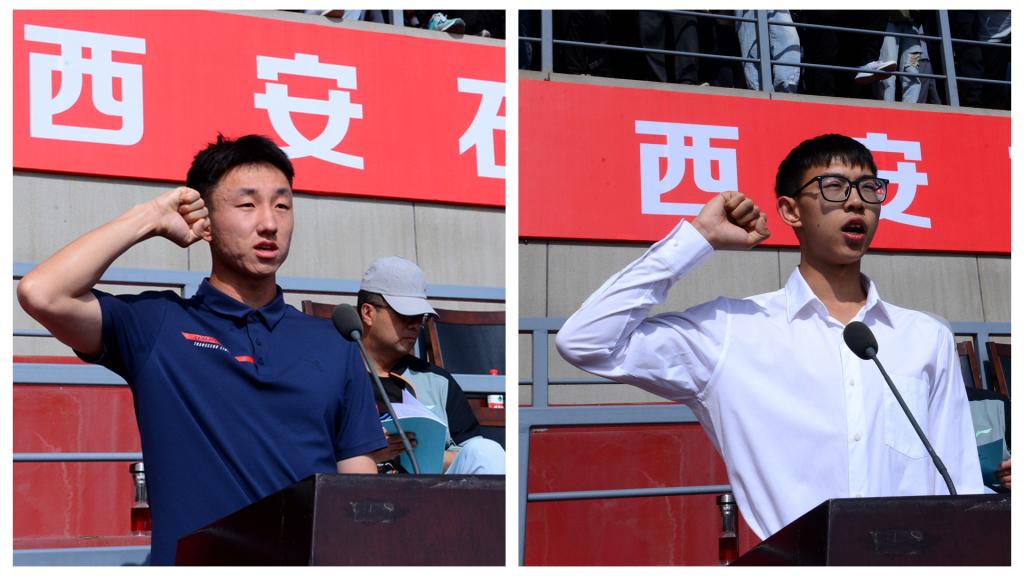 體育學(xué)院教師崔曜川、學(xué)生代表劉思宇分別代表裁判員和運動員宣誓。